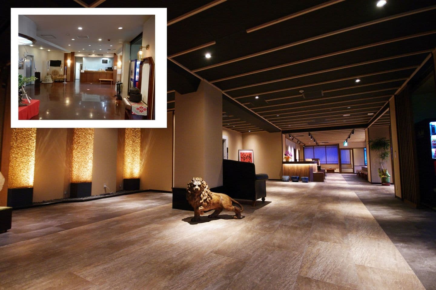 既存建物全体をリノベーション。既存大広間の一部を大浴場にリノベーション。